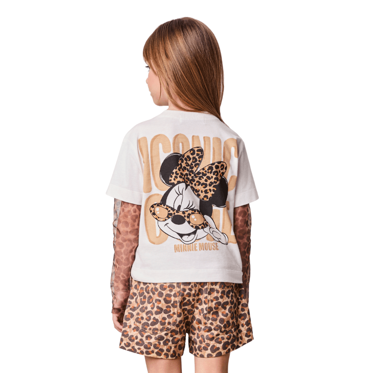 Blusa Infantil com Tule Animal Print da Minnie Animê