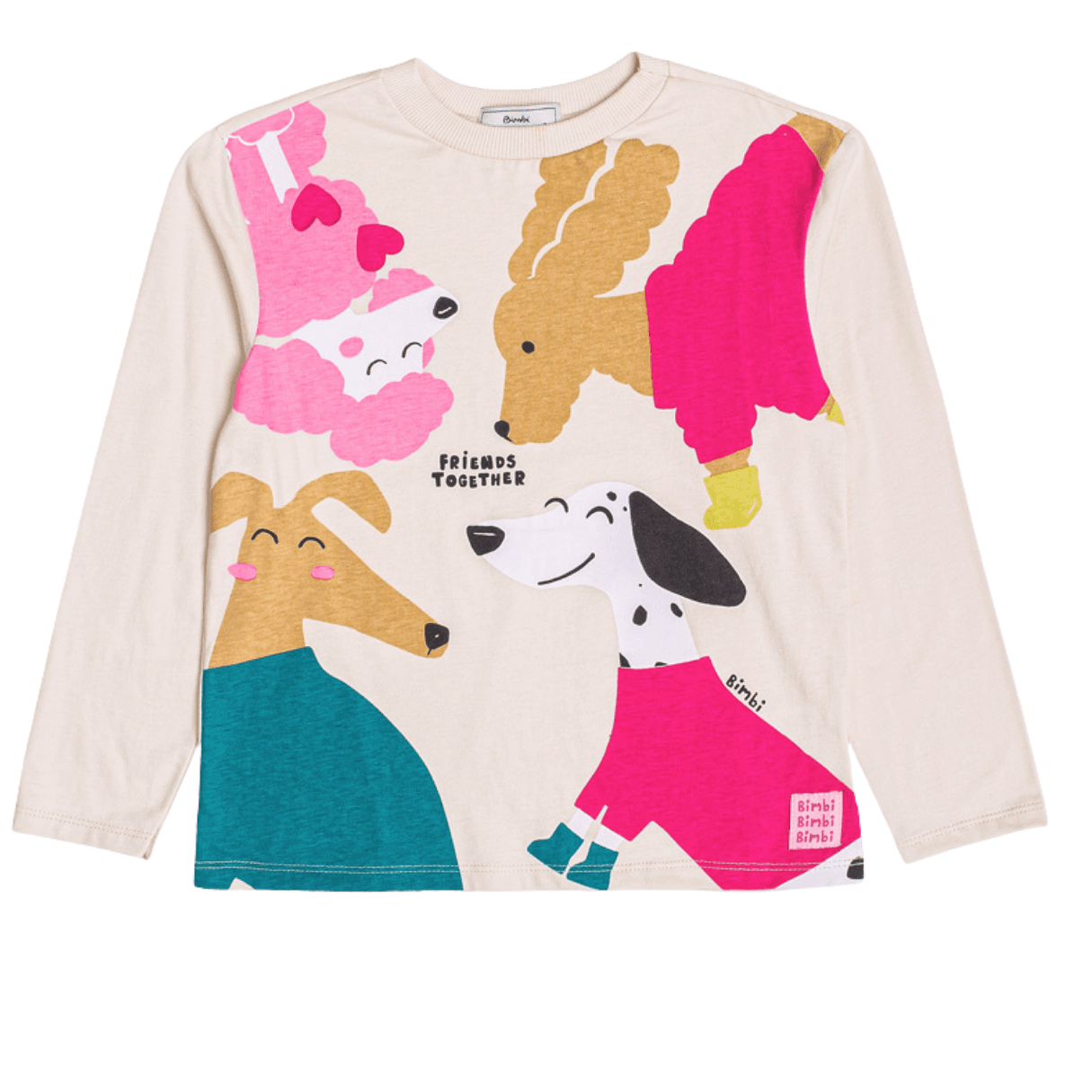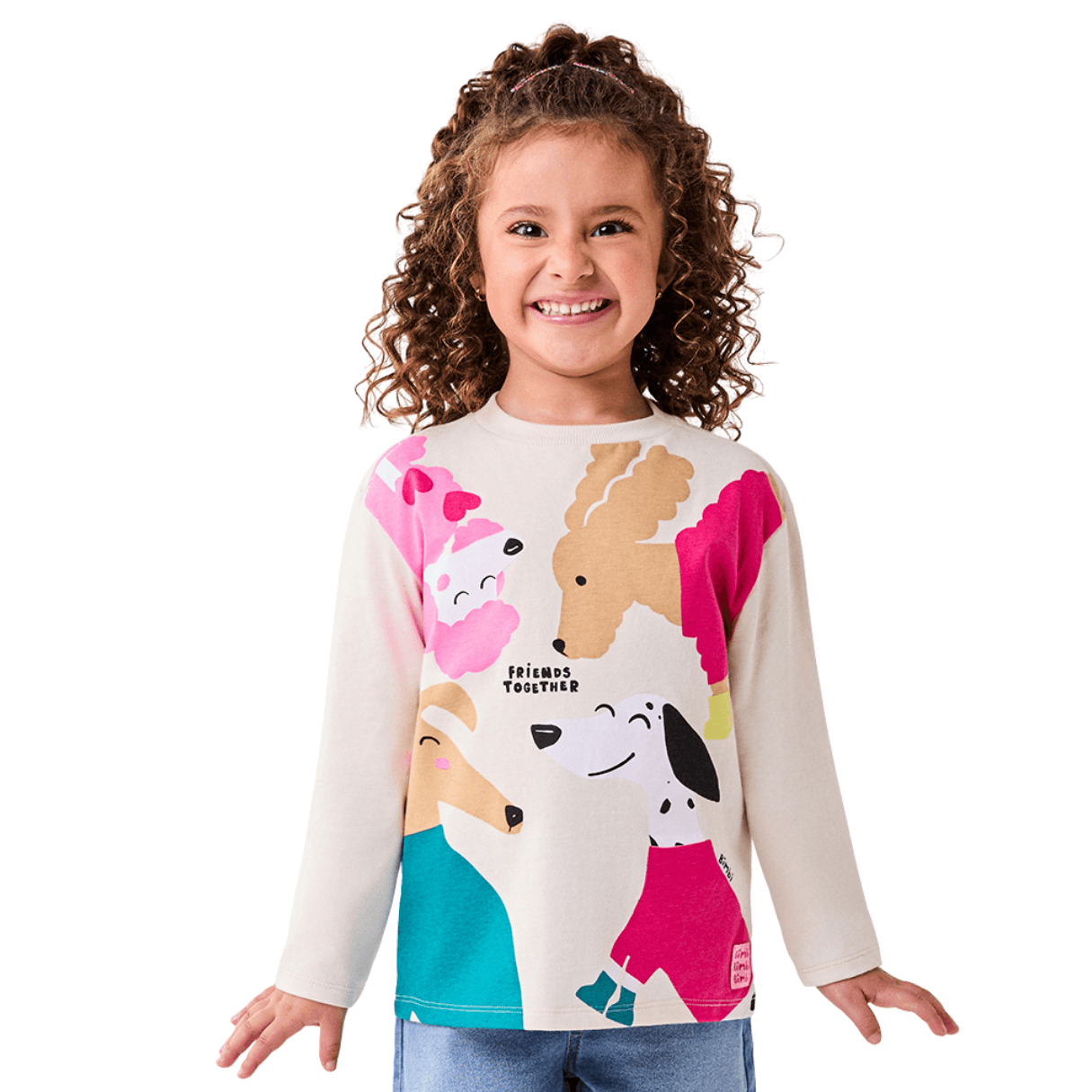 Roupa Infantil Bimbi. A Blusa Manga Longa Friends Together traz conforto e mensagem positiva para o inverno infantil. Produzida em tecido macio, garante toque suave e ótimo caimento. A estampa com lettering reforça o clima de amizade e afeto, enquanto a manga longa oferece proteção térmica leve. Versátil, combina facilmente com calças, leggings e saias, sendo ideal para o uso diário. Uma peça pensada para mães que buscam conforto, praticidade e um visual cheio de significado no Inverno 26.