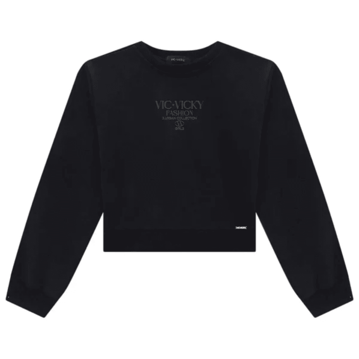 Roupa juvenil Vic&Vicky. O blusão boxy over em moletom sem pelúcia, é a escolha perfeita para as meninas que amam um look cheio de conforto, sem abrir mão do estilo no dia à dia! Disponível em preto, é uma peça essencial, perfeita para montar diversos looks e deixar o inverno das pequenas ainda mais estiloso! A estampa em puff, adiciona um charme especial à peça.