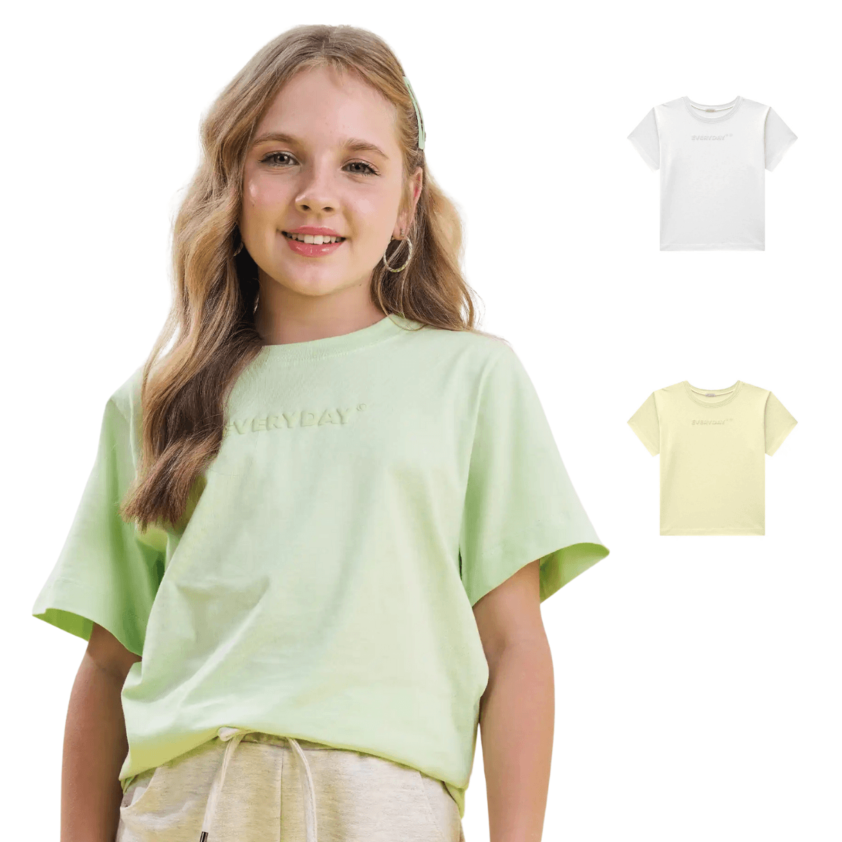 Roupa juvenil Vic&Vicky. A camiseta comfy em meia malha é a peça perfeita para as garotas que amam um visual descolado e confortável, com uma modelagem moderna e estampa divertida. Disponível em quatro cores super estilosas – branco, amarelo, verde e rosa – ela é ideal para compor looks cheios de personalidade.