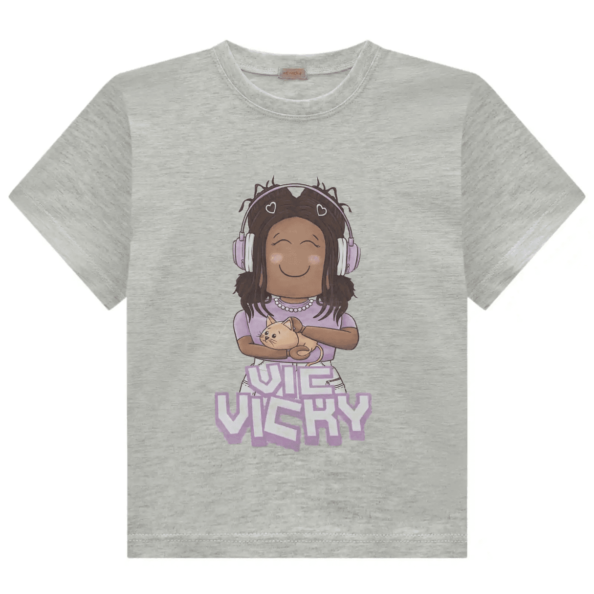 Roupa juvenil Vic&Vicky. A camiseta boxy over em meia malha é a peça perfeita para as garotas que amam um visual descolado e confortável, com uma modelagem moderna e estampa divertida.