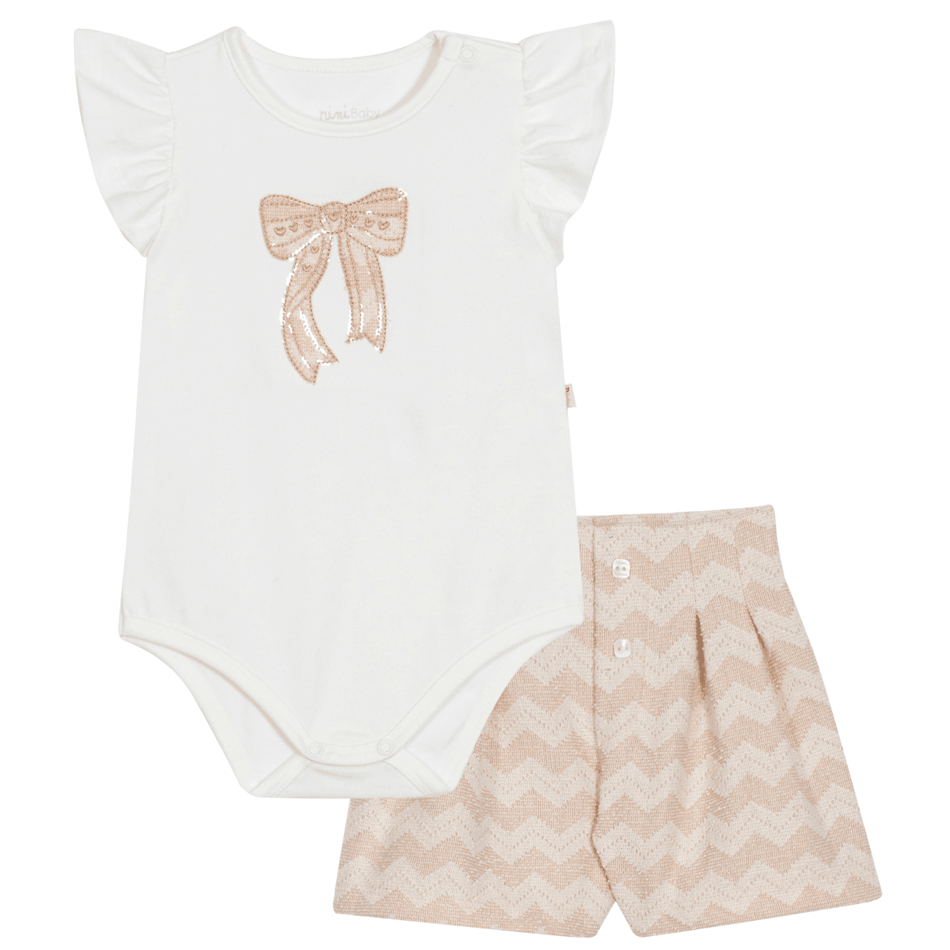 Roupas de bebê Nini & Bambini. Conjunto para bebê menina, de body em cotton e short em malha texturizada.