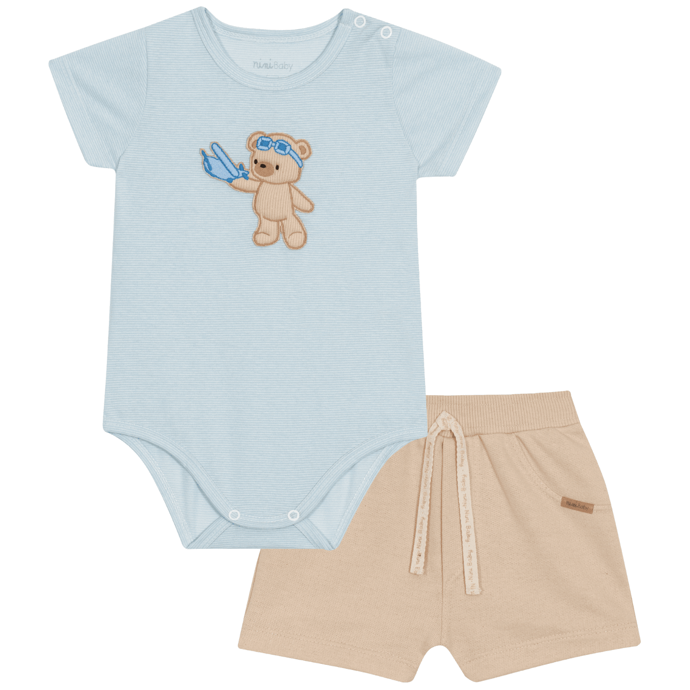 Roupas de bebê Nini & Bambini. Conjunto para bebê menino, de body em malha e bermuda em moletinho.