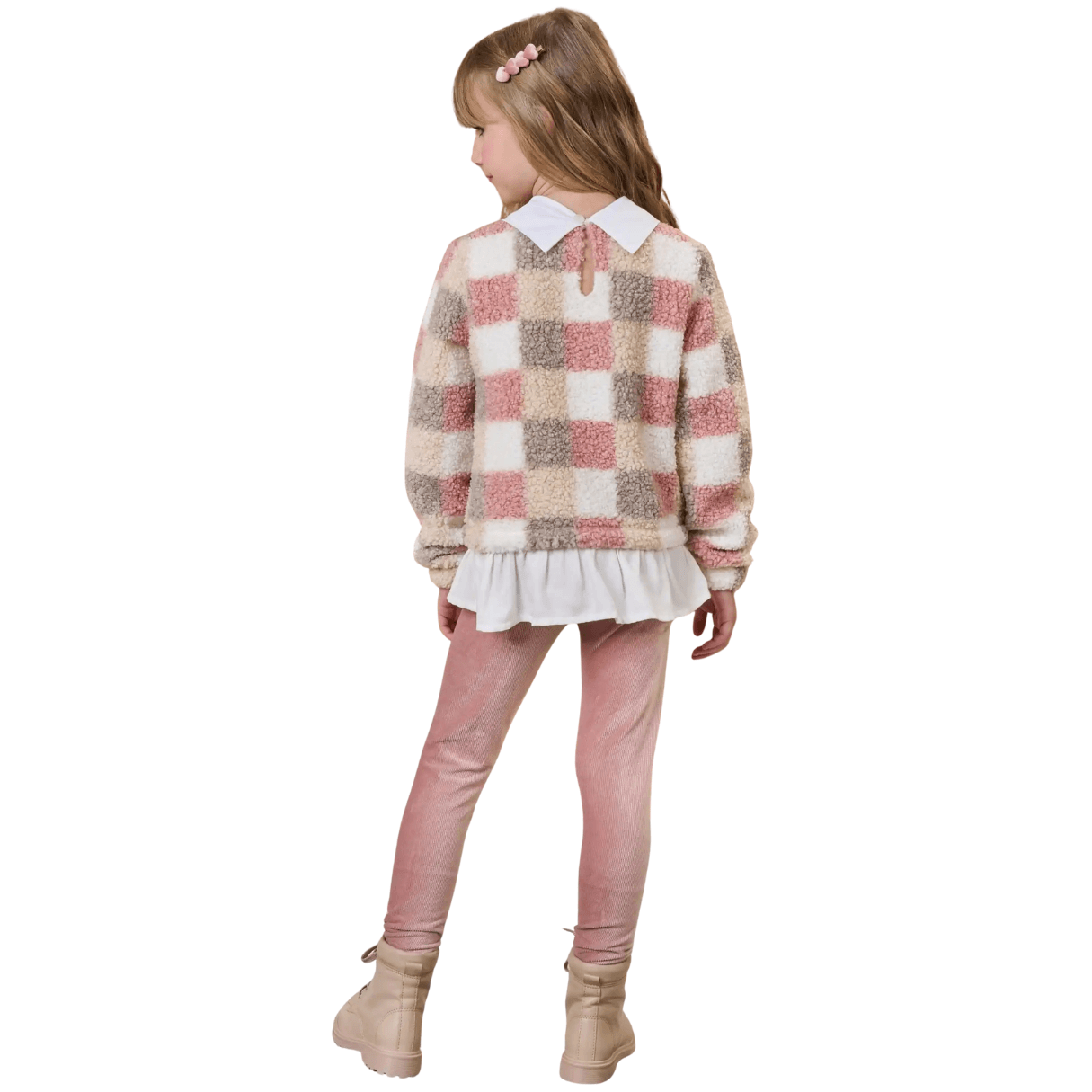O conjunto de blusão em pelo carneirinho e calça legging em malha cotelê, é a escolha perfeita para as meninas que amam um look cheio de conforto, sem abrir mão do estilo no dia à dia! Disponível em uma cor super estilosa – nude – ela é uma peça essencial, perfeita para montar diversos looks e deixar o inverno das pequenas ainda mais estiloso!