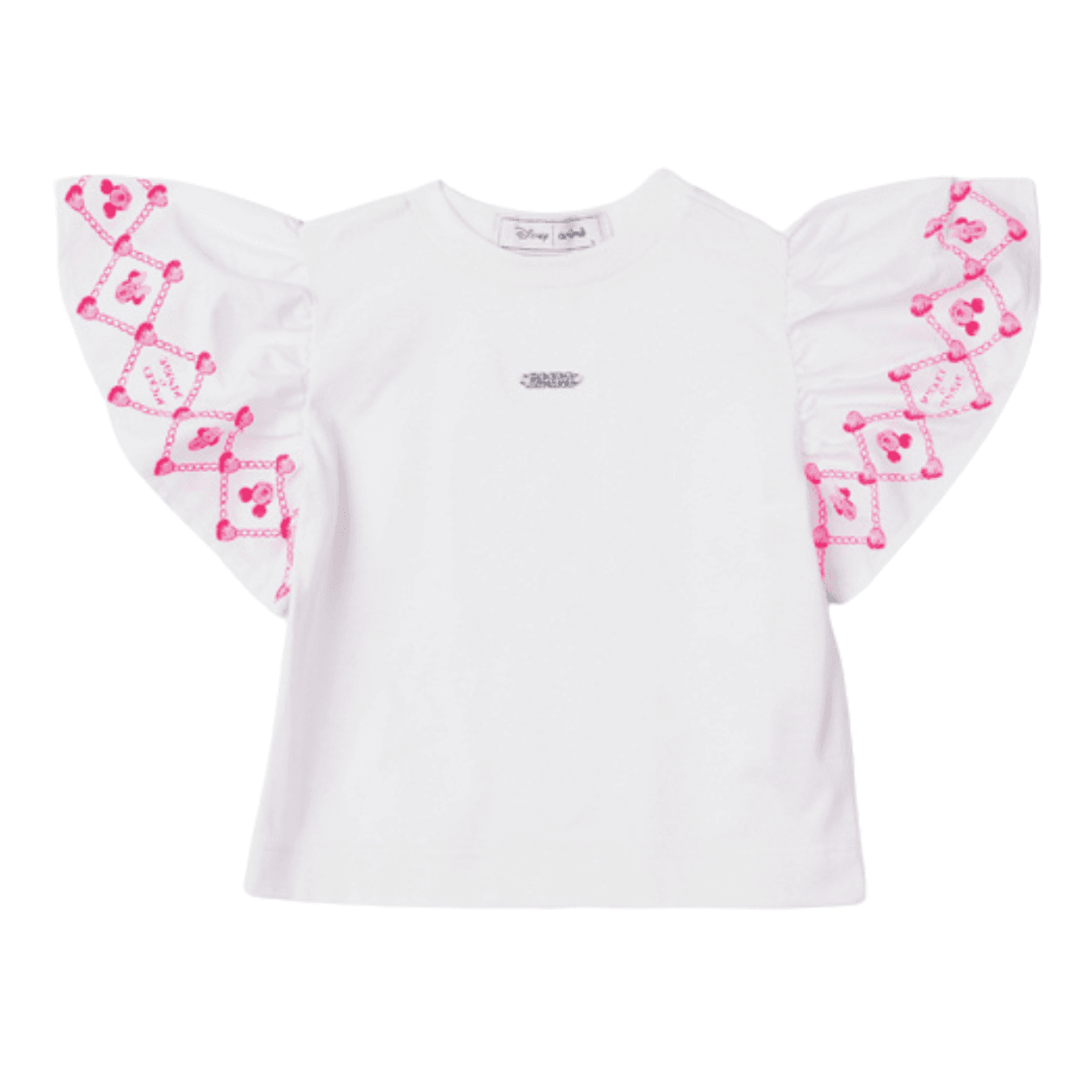 Roupa Infantil Animê. Esse conjunto une leveza e charme com seu tule e babados que dançam com o movimento. A combinação entre a blusa de mangas amplas e a saia em tule garante um visual sofisticado, perfeito para ocasiões especiais. Estampa exclusiva da Minnie.