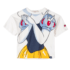 Roupa Infantil Animê. Transforme o visual do dia a dia com o conjunto Animê inspirado na Branca de Neve. A t-shirt estampada com o vestido clássico da princesa ganha um toque moderno com a legging vermelha vibrante e a charmosa capa com laço. Perfeito para meninas que adoram ousar com estilo!
