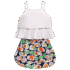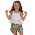 Roupa Infantil Precoce. Conjunto infantil em tecido de algodão, decote reto, babadinho. Short com cós de elástico e barra ondulada, soltinho e confortável. Feito com nossa estampa exclusiva “PEDRINHAS”.