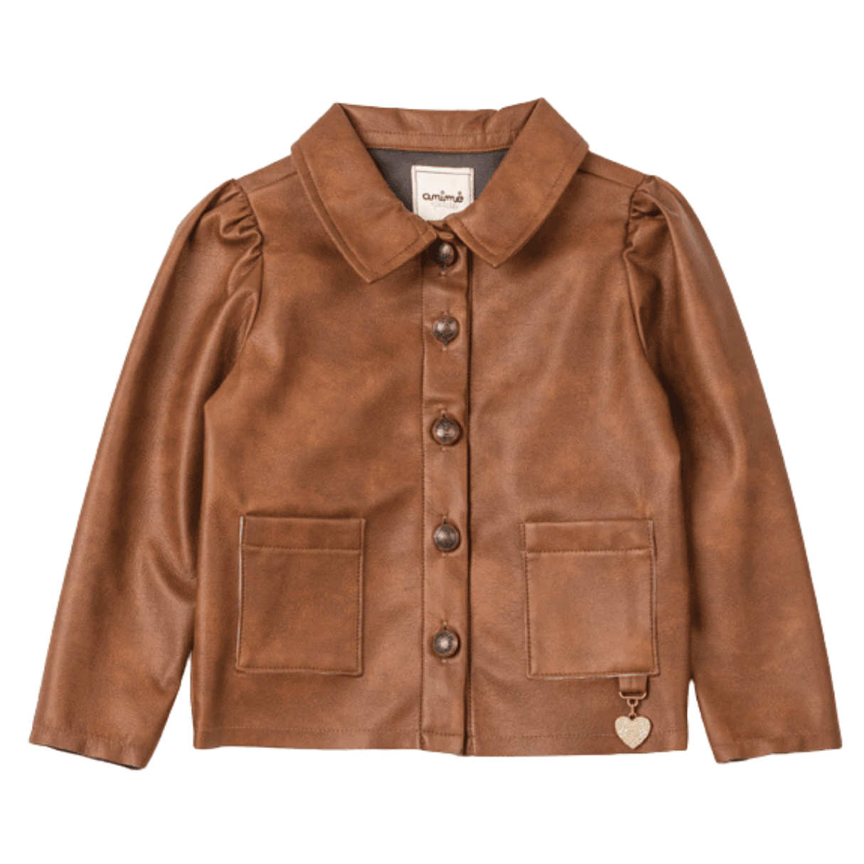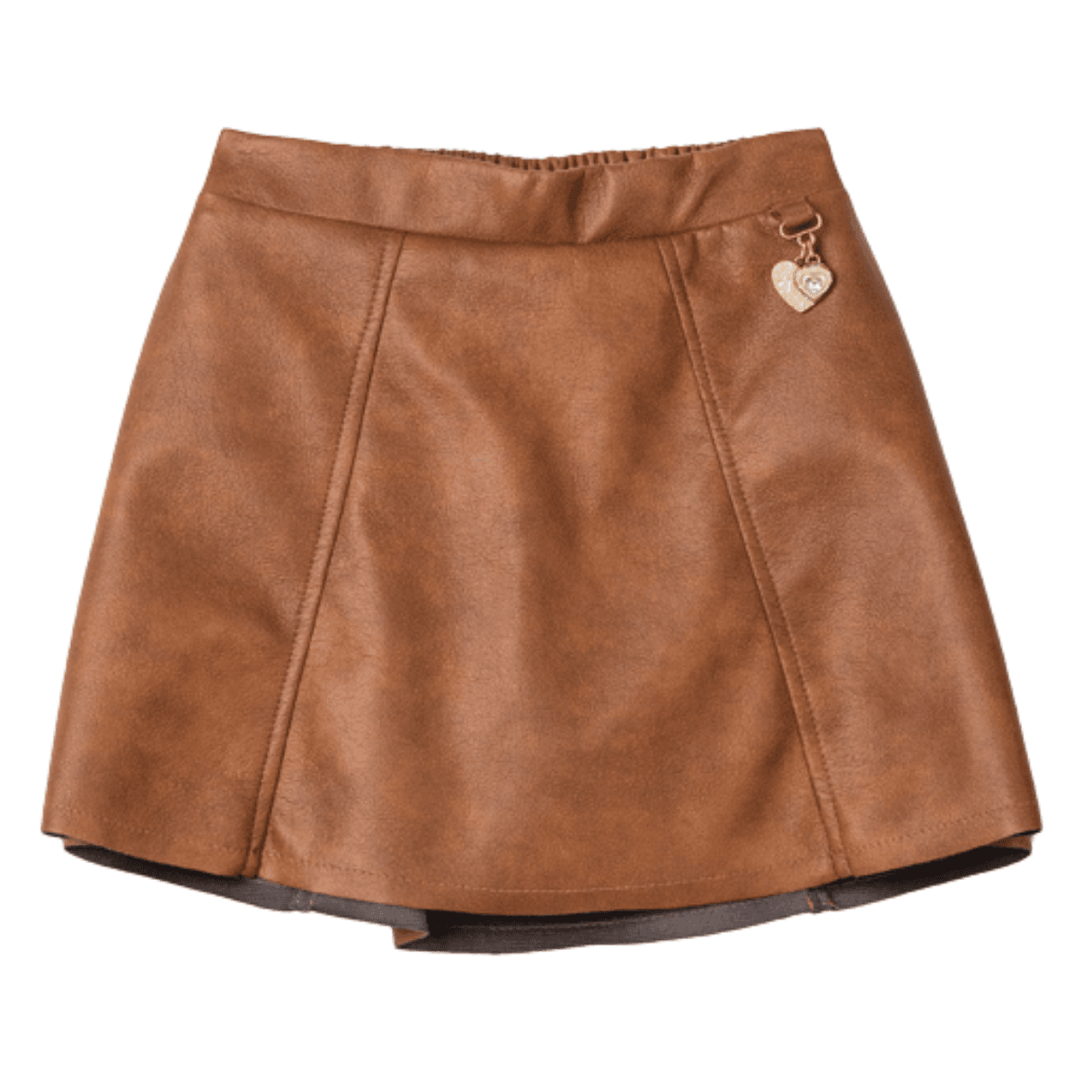 Roupa Infantil Animê. Textura e atitude se encontram aqui. O fake leather em tom brown traz sofisticação contemporânea, fugindo do óbvio preto. As mangas franzidas da jaqueta adicionam volume e informação de moda, criando um contraste elegante entre força e feminilidade. A construção é firme, com caimento que sustenta o design.  A modelagem estruturada da saia valoriza o look e facilita combinações com tons neutros, off, bege, preto e até rosa baby pra contrastar. O pingente entra como detalhe delicado, elevando o acabamento. Ideal para produções com bota e meia-calça, mas também fica linda com tênis pra deixar o visual mais descolado. Versátil, moderna e com presença sem exagero.