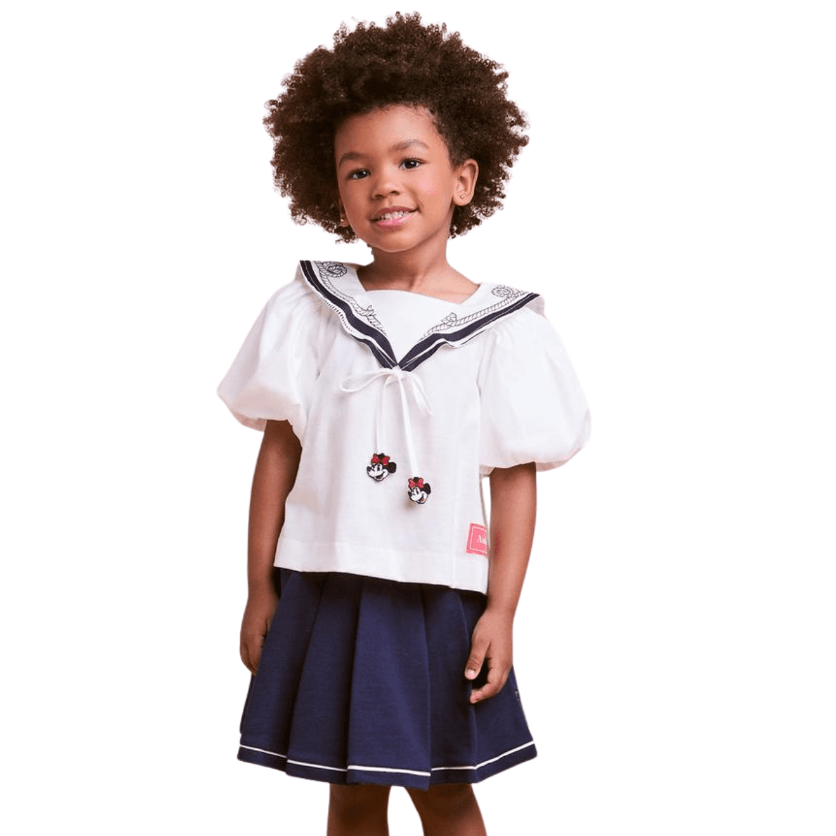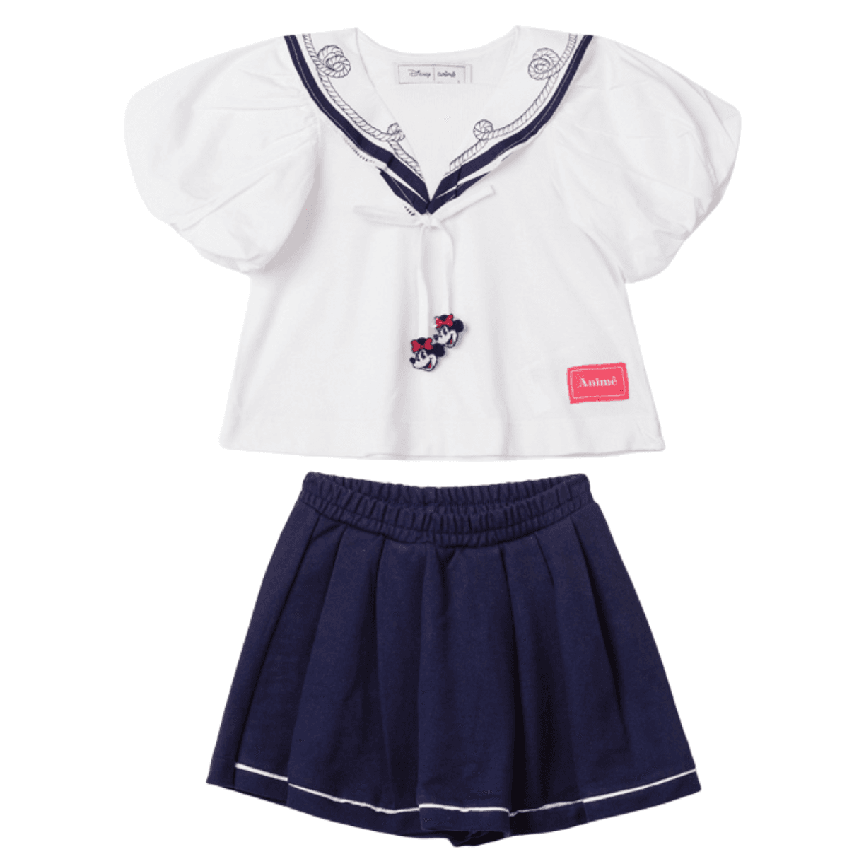 Roupa Infantil Animê. Delicado e cheio de estilo, esse conjunto traz uma temática de marinheiro, com detalhes inspirados na collab Disney.