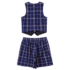 Roupa Infantil Animê. O Conjunto Xadrez Fashion Animê é perfeito para meninas que adoram um visual elegante e estiloso. Composto por um colete moderno e uma saia clássica, ambos na estampa xadrez azul marinho, o conjunto traz um toque de sofisticação atemporal. Detalhes como os botões delicados no colete complementam o visual, tornando-o ideal para ocasiões especiais ou eventos casuais chiques. A modelagem confortável e o caimento impecável garantem estilo e praticidade em todas as situações.