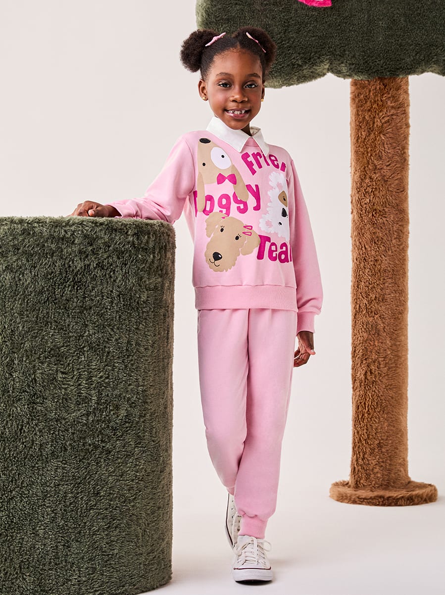 Conjunto Infantil Moletinho Cachorrinho Rosa Bimbi