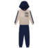 Roupa infantil Kyly. Para acompanhar o ritmo dinâmico dos pequenos com muito estilo, este conjunto infantil menino da Kyly aposta em uma proposta moderna e urbana, perfeita para compor looks confortáveis e cheios de atitude no dia a dia. A jaqueta é confeccionada em moletom peluciado 100% algodão, proporcionando toque macio, aconchego e excelente conforto térmico para os dias mais fresquinhos. A modelagem confortável garante liberdade de movimentos, enquanto o fechamento frontal em zíper facilita o vestir. O capuz agrega funcionalidade e reforça o estilo esportivo da peça, e os bolsos frontais trazem praticidade. A estampa lettering localizada, combinada com detalhes nas mangas, cria um visual contemporâneo e cheio de personalidade.