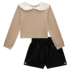 Roupa infantil Infanti. Conjunto de Blusão Boxy em Moletom sem Pelúcia com Shorts em Couro Sintético.