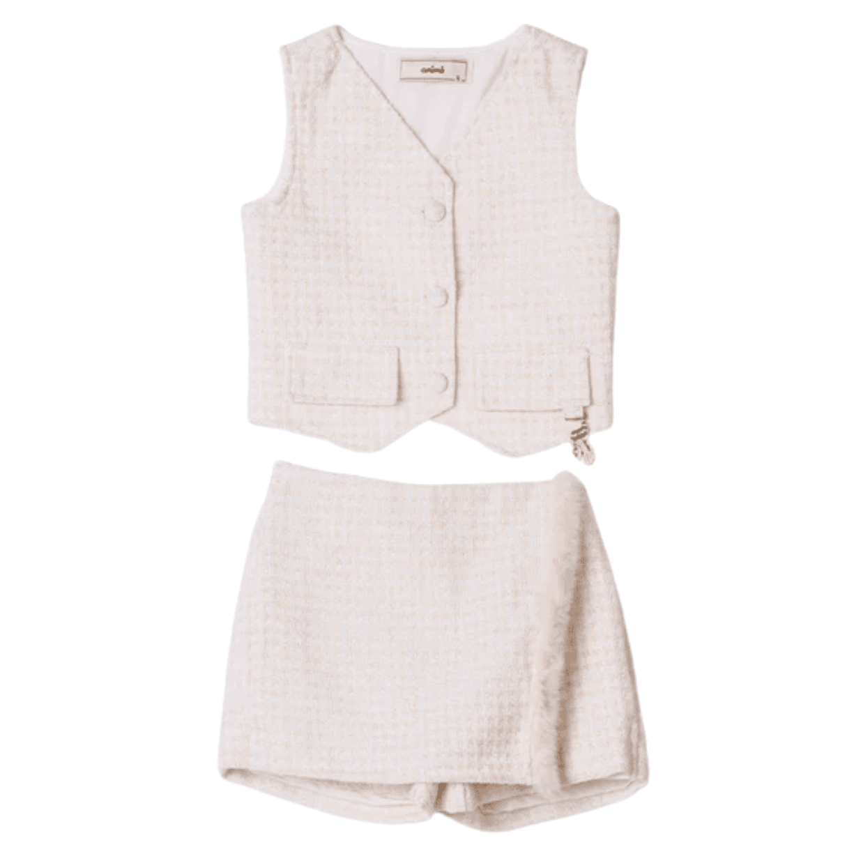 Conjunto Infantil Tweed com Pingente e Pelinhos Animê