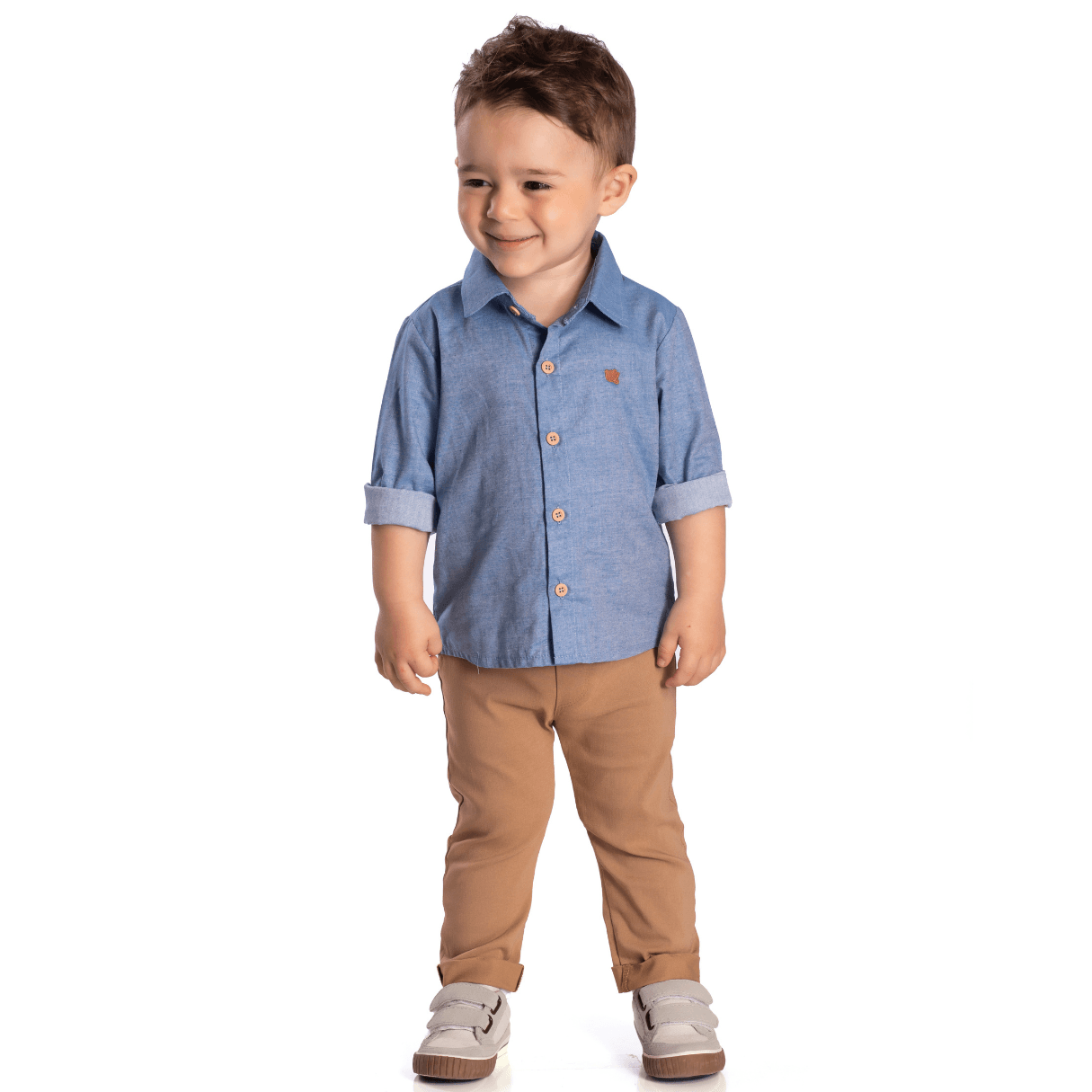 Roupas de bebê e infantil Nini & Bambini. Conjunto para menino, de calça em bengaline e camisa em tricoline.