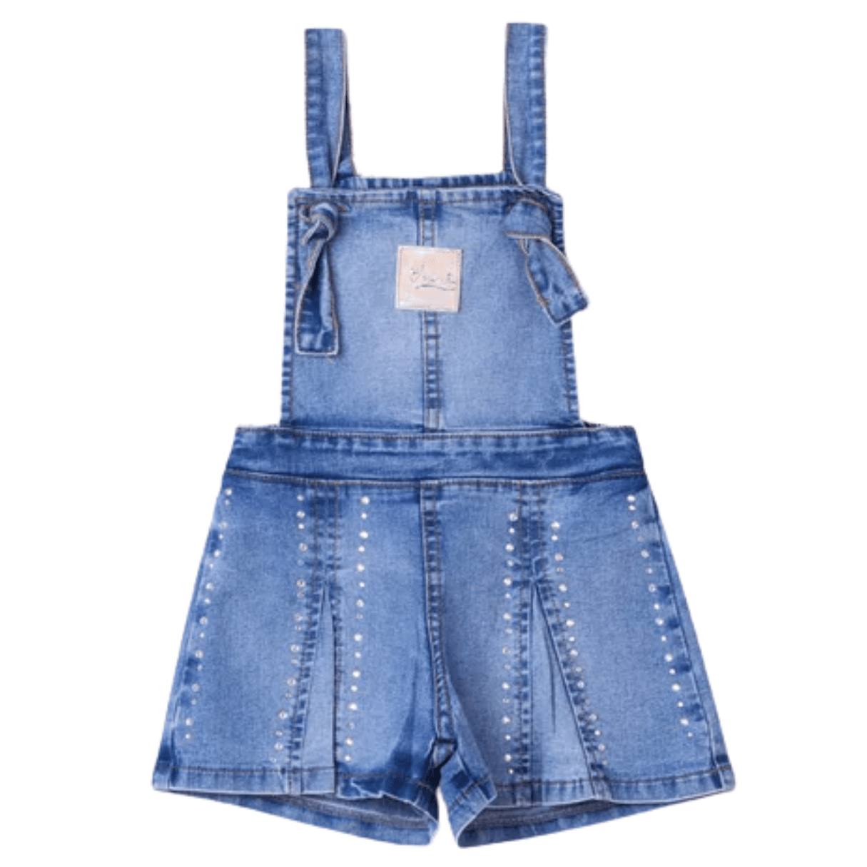 JARDINEIRA INFANTIL JEANS COM RECORTES E STRASS