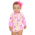 Moda praia Siri Kids. Macaquinho de praia e piscina infantil estampado.