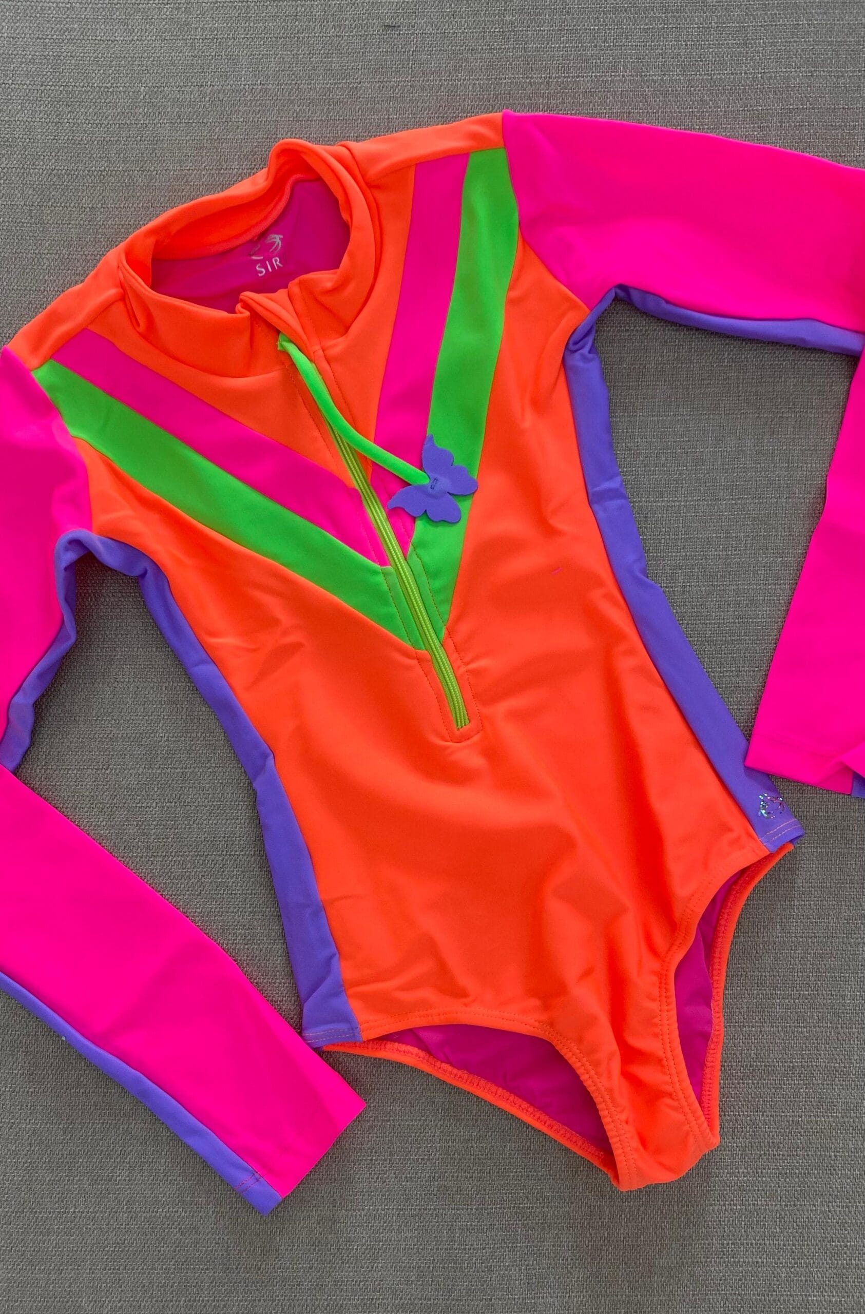 Moda praia Siri Kids. Maiô infantil manga longa.