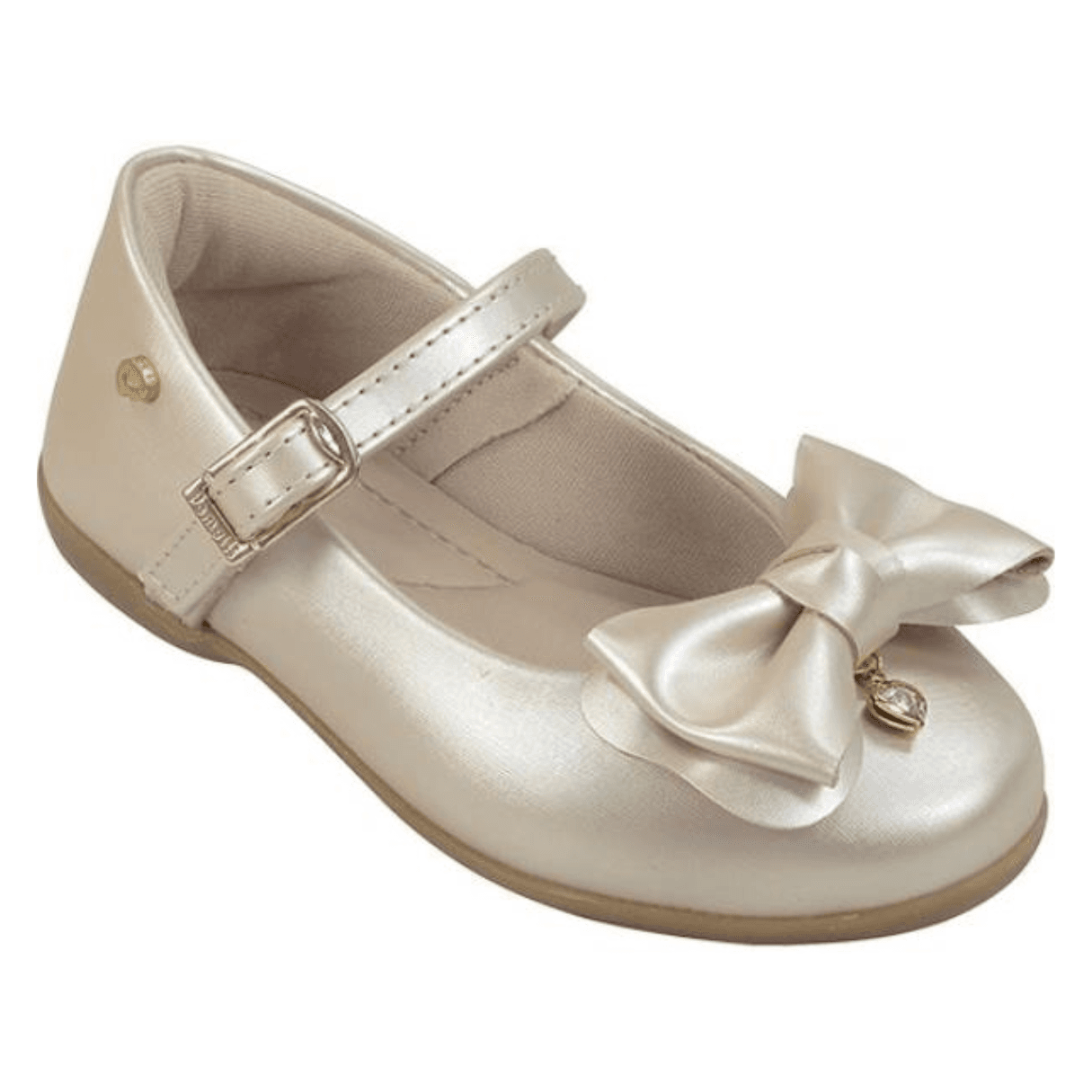 Sapatilha nude em sintético, com laço glamouroso . Sapato infantil forrado com tecido que absorve o suor e com espuma no calcanhar. Sapato feminino com palmilha que possui pontos de conforto em lugares estratégicos proporcionando uma sensação de leveza e bem estar aos pezinhos. Sapatilha feminina com solado emborrachado antiderrapante, leve e flexível. Sapatilha infantil com fechamento em fivela sem pino, que facilita o calce, dando autonomia para as meninas.