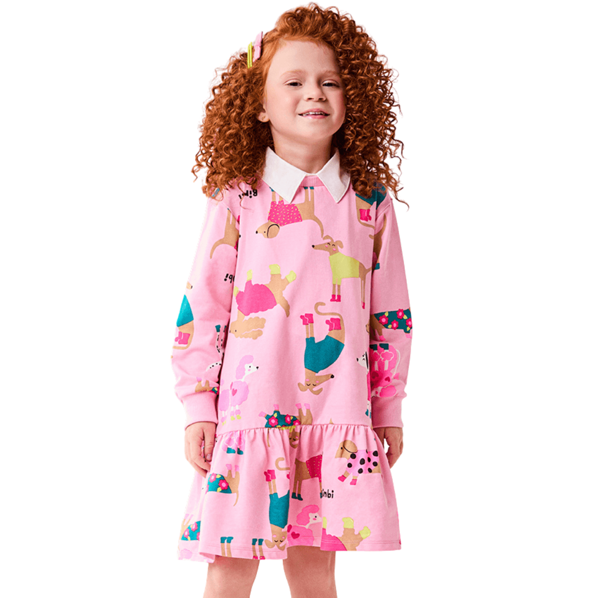 Roupa Infantil Bimbi. O Vestido Manga Longa Rosa Baby com Cachorrinhos traz delicadeza e diversão para o inverno infantil. Produzido em tecido macio, garante conforto ao longo do dia. A estampa de cachorrinhos encanta e estimula a imaginação, enquanto a manga longa oferece proteção térmica. A cor rosa baby reforça o visual fofo e aconchegante. Uma peça pensada para mães que buscam conforto, carinho e praticidade no Inverno 26.