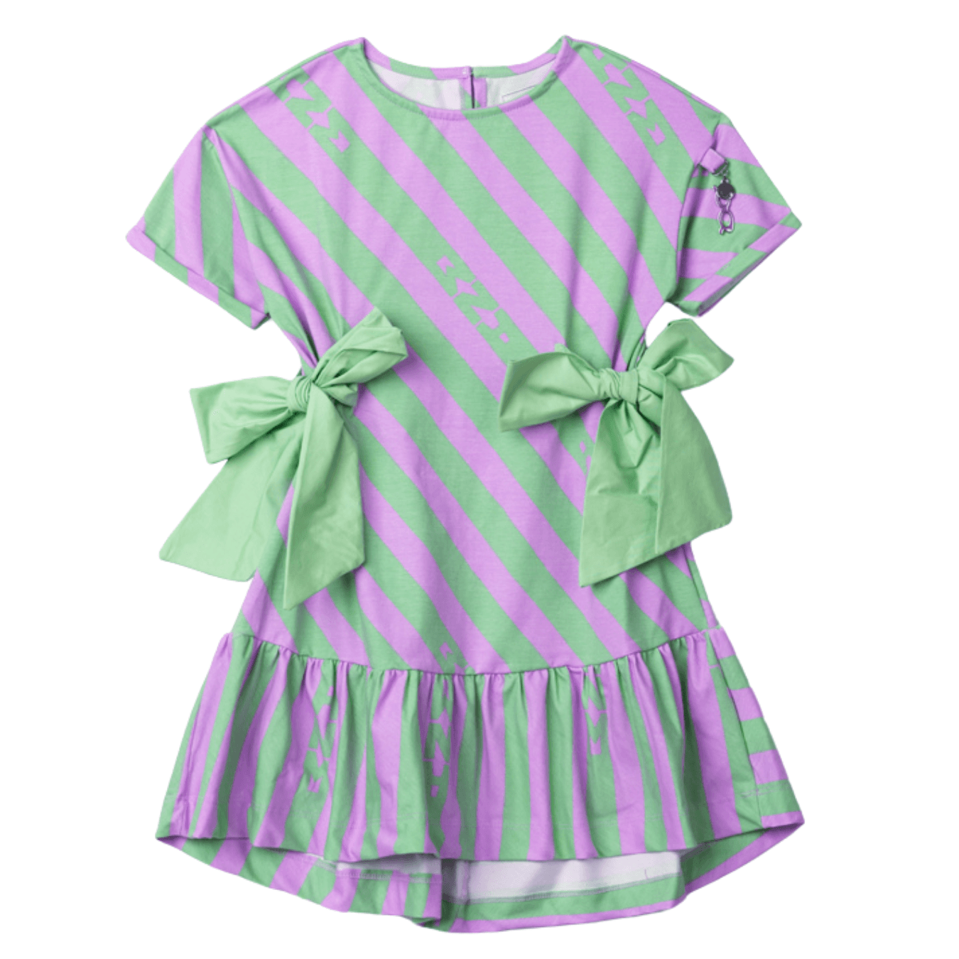 VESTIDO INFANTIL GLAM COM LISTRAS E MAXI LAÇOS
