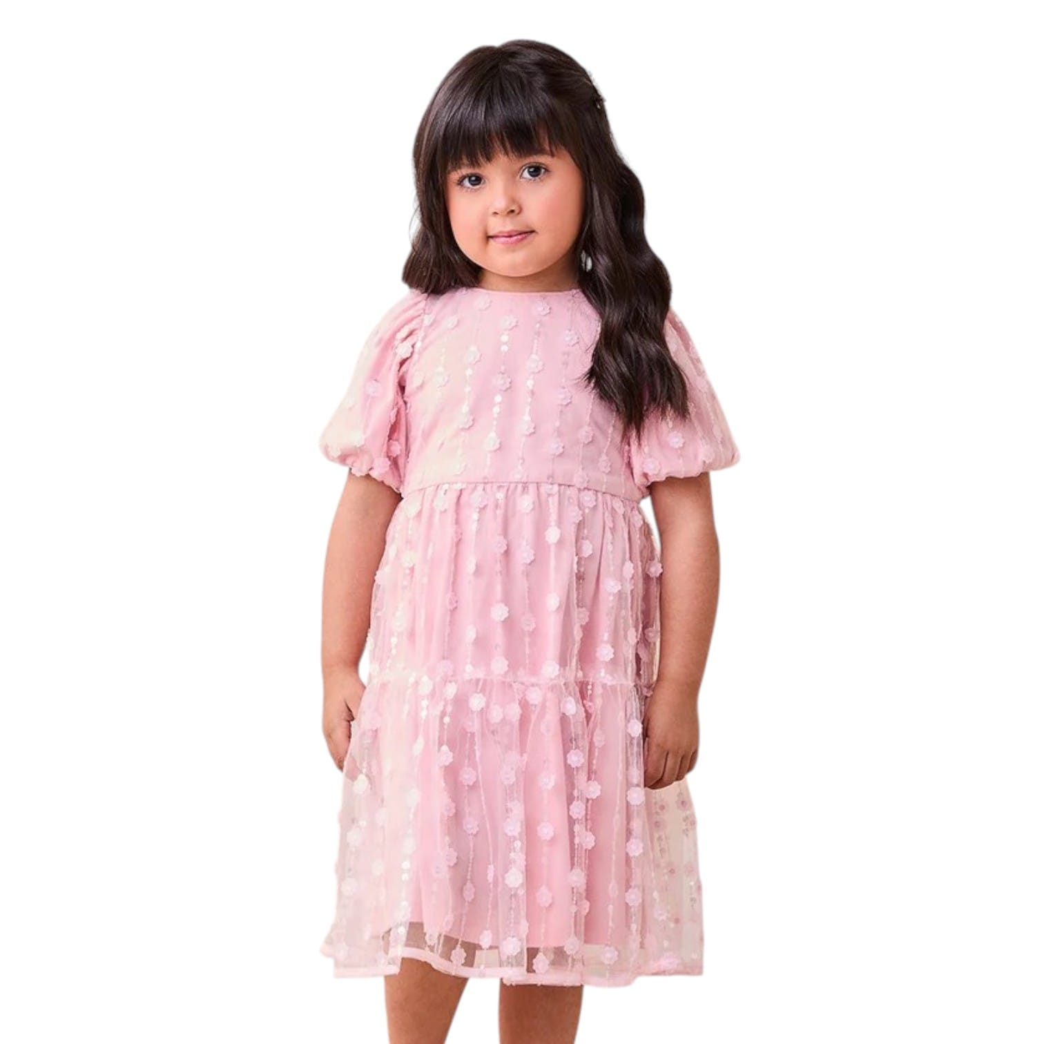 VESTIDO INFANTIL ROSA DE TULE BORDADO